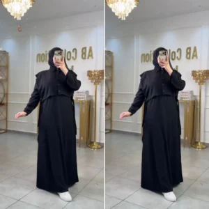 بقصّته الواسعة وأكمامه، يمنحك هذا الطقم حرية حركة كاملة وإحساسًا بالراحة طوال اليوم، مع مظهر راقٍ يناسب مختلف المناسبات.