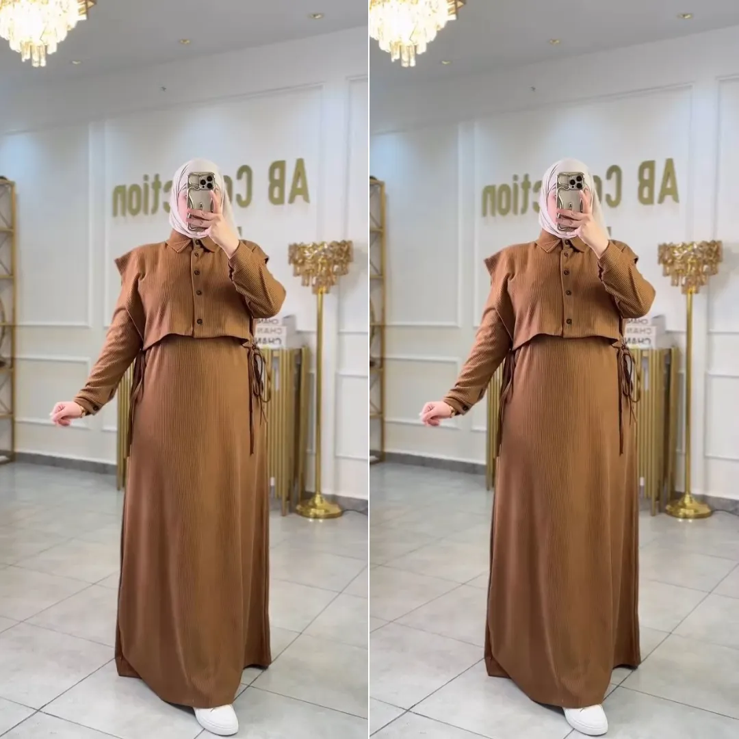 بقصّته الواسعة وأكمامه، يمنحك هذا الطقم حرية حركة كاملة وإحساسًا بالراحة طوال اليوم، مع مظهر راقٍ يناسب مختلف المناسبات.