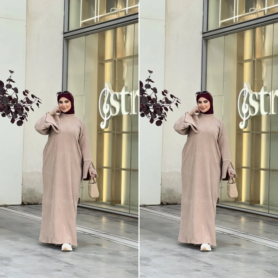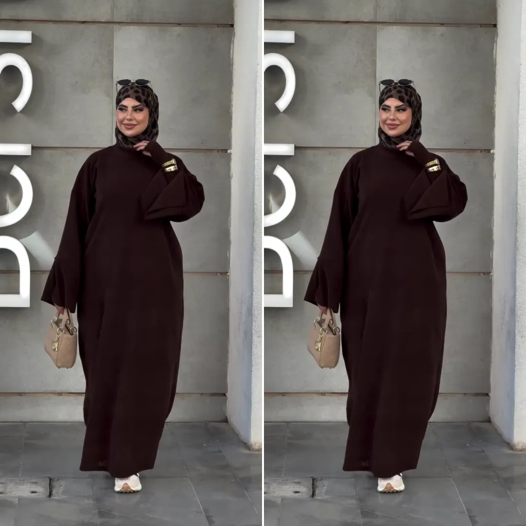 اكتشفي أناقة الراحة مع فستاننا الصوفي الطويل بتصميمه العصري والعملي. يجمع هذا اللباس بين البساطة الراقية والدفء المثالي، بفضل قصّته الواسعة والأكمام الواسعة